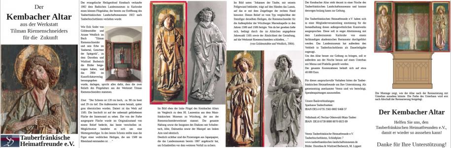 Spendenaufruf für Restaurierung des Kembacher Altars